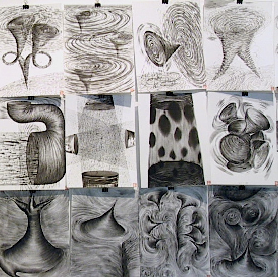 He always made scads of drawings and small paintings in preparation for his large paintings, which were often six feet tall and/or wide. His mastery of mark-making was obsessive and inventive, as he explored myriad ways to make his imagined images concrete. At a private showing of his 350 drawings, “Ecstatic Manifestations of the Physical Universe,” his friend Charles Garabedian (himself a legendary and prolific painter) asked him, “Just how do you DO that?”